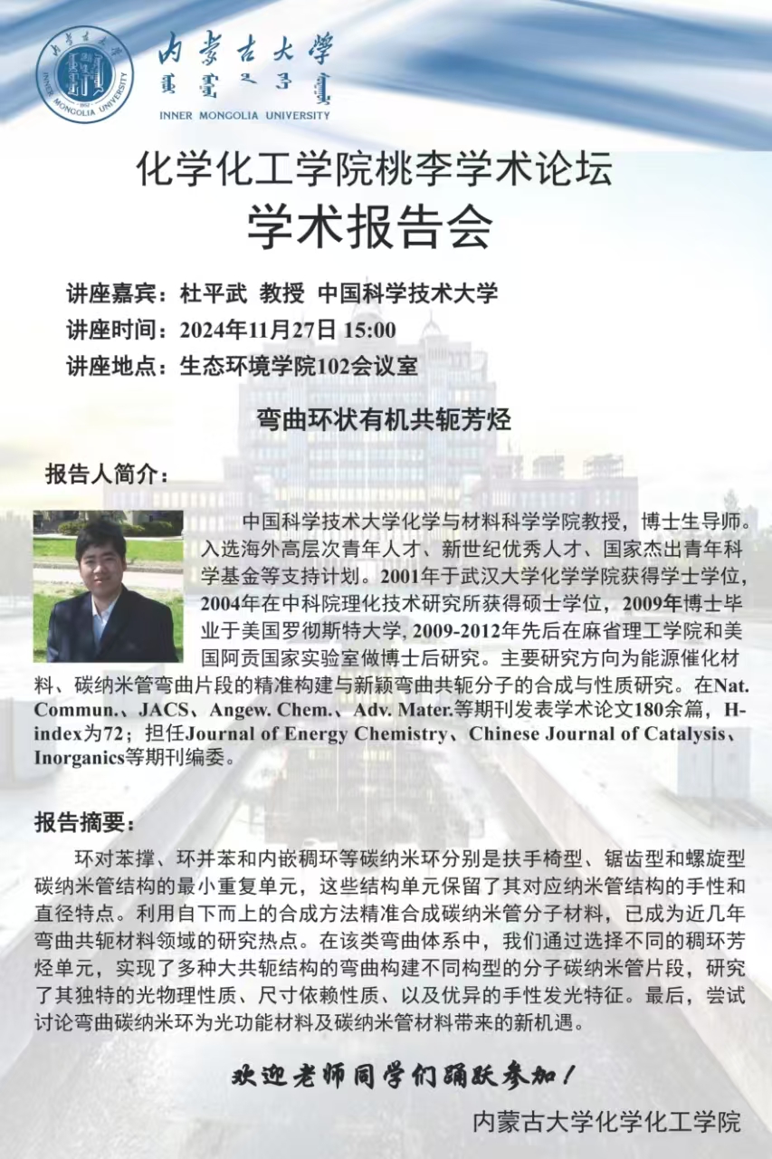 学术会议-杜平武 教授 弯曲环状有机共轭芳烃