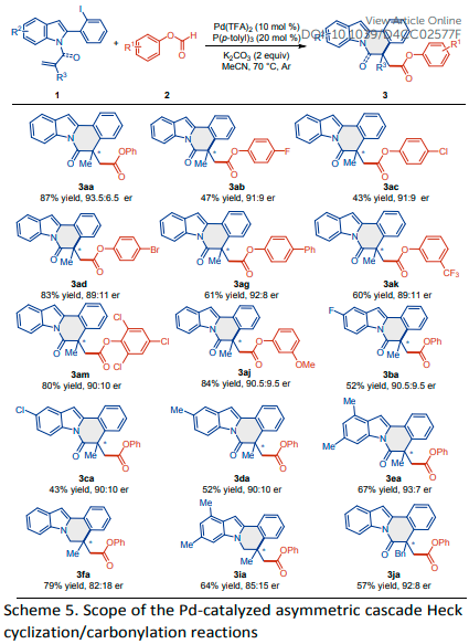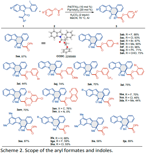 我院陈树峰、王乐明团队Chem. Commun:Pd催化吲哚与芳基甲酸酯的级联Heck环化/羰基化反应构建吲哚并异喹啉