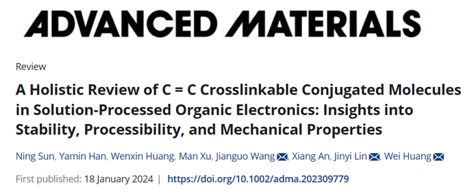 化学化工学院王建国教授团队/南京工业大学黄维院士团队 Adv. Mater. 综述:有机电子学中可溶液处理的C=C可交联共轭分子:稳定性、可加工性和机械性能