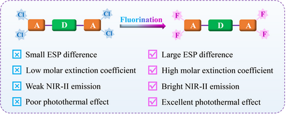 鉴于此,王建国教授团队提出了一种可同时增强光诊疗试剂NIR-II QY和PCE的氟化策略(图1),并用于癌症诊疗研究。