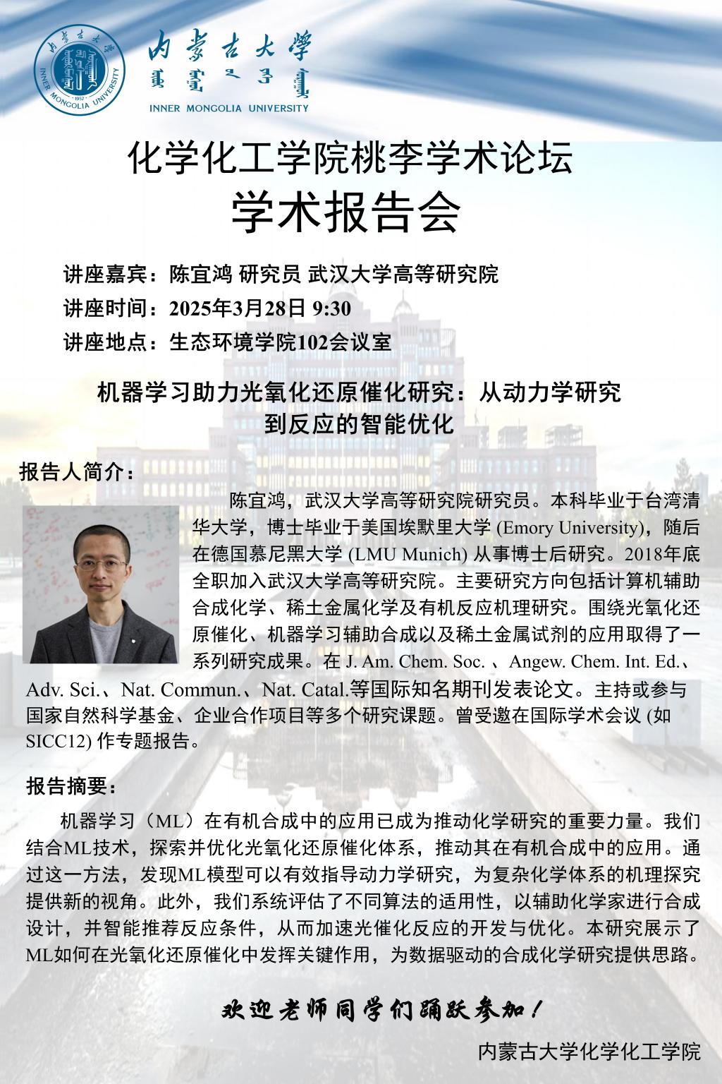 学术会议-陈宜鸿 研究员 机器学习助力光氧化还原催化研究 从动力学研究到反应的智能优化